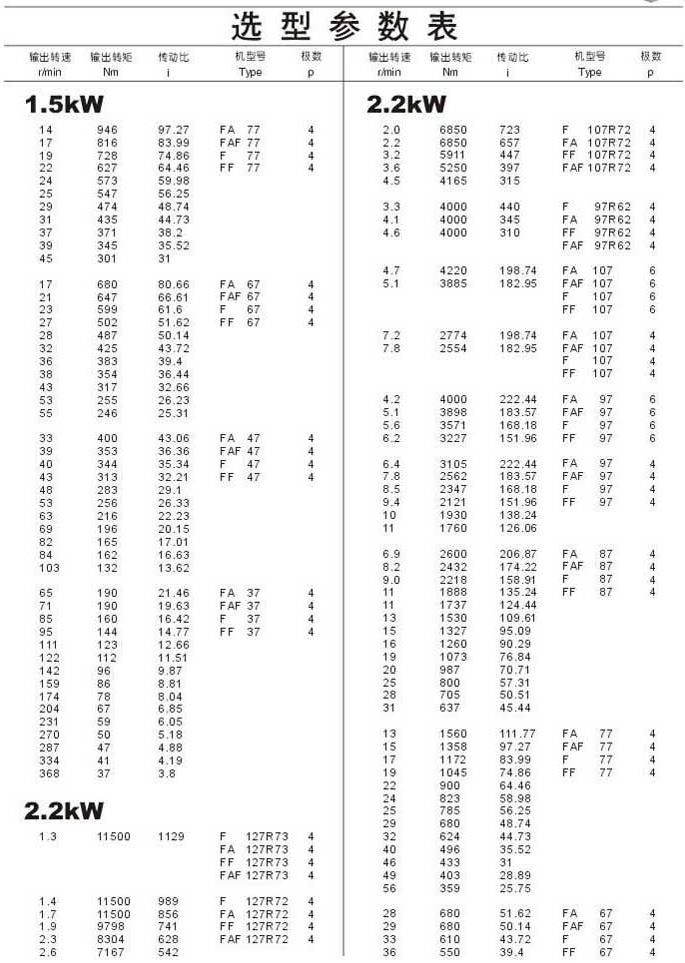 選型參數(shù)表1.5kW(續(xù)),2.2kW