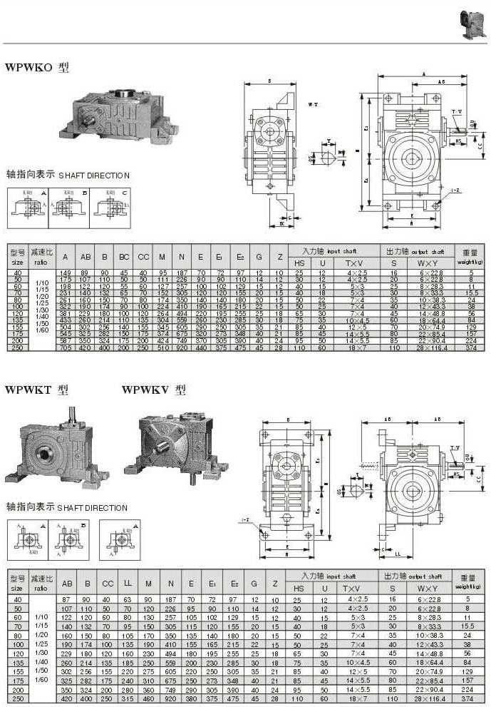 WPWKO,WPWKT,WPWKV型型號參數(shù)圖表