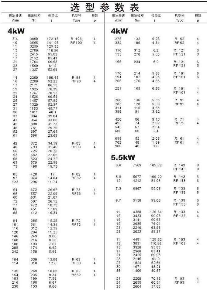 選型參數(shù)表4kW(續(xù))和5.5kW